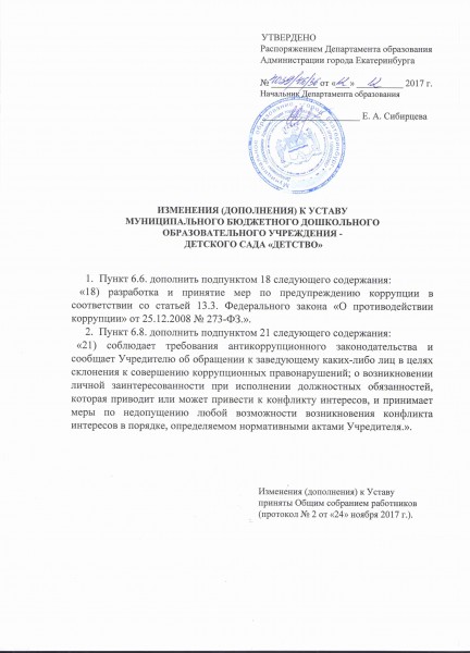 Изменения (дополнения) к Уставу МБДОУ-детского сада "Детство" № 4039/46/36 от 12.12.2017г..jpg